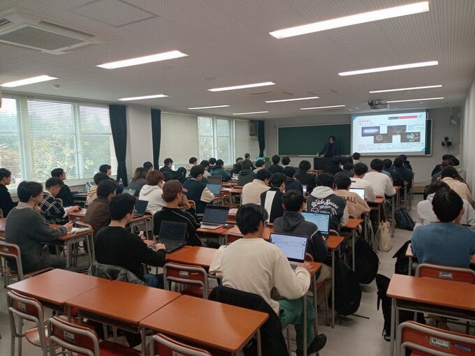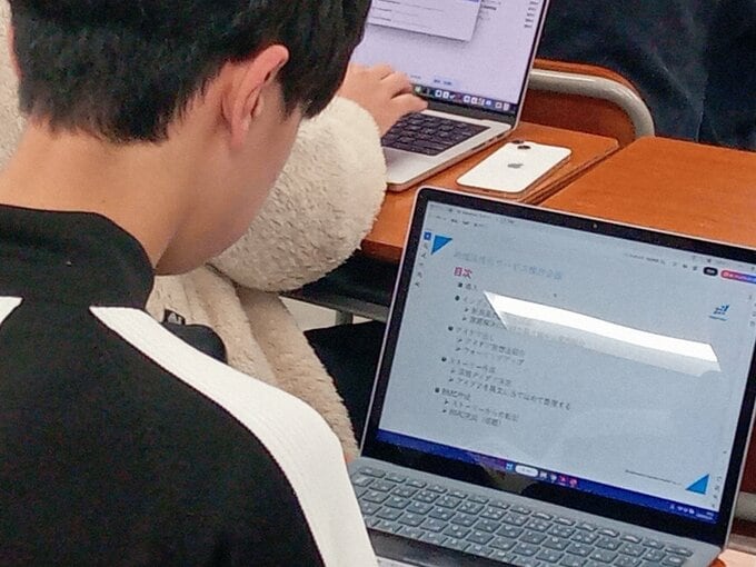 産学連携の共同研究の一環として実現したもので、BSNアイネット技術開発部の島宗幸嗣さんが講師となり、学生たちにAIを活用しながら地域活性化のサービスを検討するプロセスを体験してもらいました。