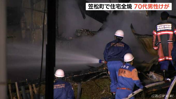 岐阜県笠松町で木造住宅が全焼し、住人の男性がやけどを負いました。