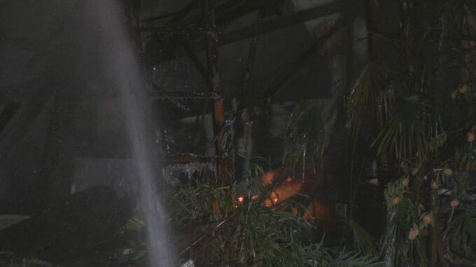 住宅には坂さんと妻、三男の3人が住んでいて、坂さんが両手などにやけどをしましたが命に別状なく、妻と三男にけがはないということです。出火当時、住宅ではファンヒーターを使っていたということです。