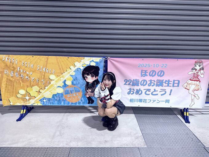 投稿された写真には、ファンからのお祝い横断幕も写っており、「2025-10-22 ほのの22歳のお誕生日 おめでとう!」という文字も確認できました。