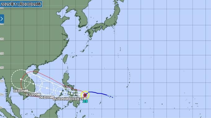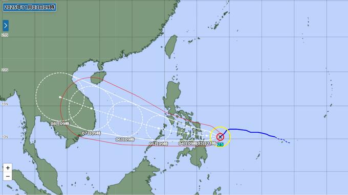 台風25号はフィリピンの東を西北西へ進んでいます。4日にも、強い勢力に発達する予想です。最新の情報に注意してください。