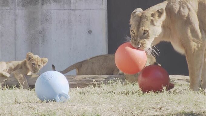 豊橋市ののんほいパークでことし8月17日に生まれた3頭の赤ちゃんライオン。オスが2頭、メスが1頭で元気いっぱいに動き回っています。