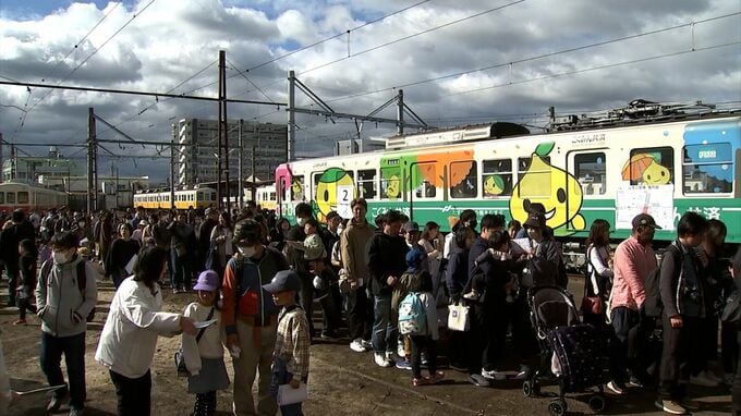 このほか、思い思いの絵や文字が描かれた「お絵描き電車」もあり、今後、1か月ほど実際に路線を走る予定だということです。