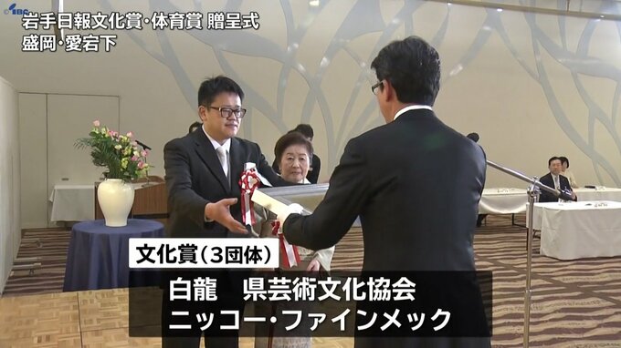 文化やスポーツの分野で優れた功績をあげた個人や団体を表彰する、岩手日報文化賞・体育賞の贈呈式が3日行われました。