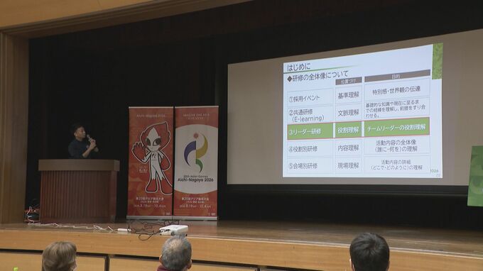 来年開催のアジア・アジアパラ大会に向けて、観客や競技などについて案内を行うボランティアリーダーの研修が、名古屋の昭和区役所で行われました。