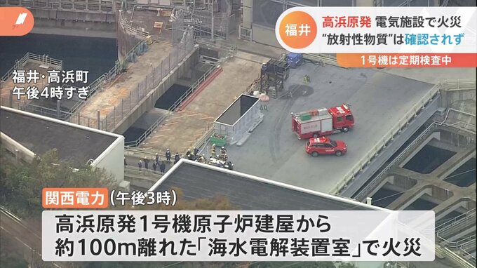 関西電力によりますと、きょう午後3時前、福井県高浜町にある高浜原発1号機の原子炉建屋からおよそ100メートル離れた「海水電解装置室」で火災が発生しました。火は30分ほどで消し止められ、けが人はおらず、放射…