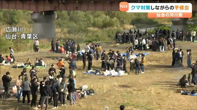 連休最終日の3日、仙台市内の河川敷は芋煮会を楽しむ人でにぎわいました。今年はクマ対策をしながら味わう人の姿もみられました。