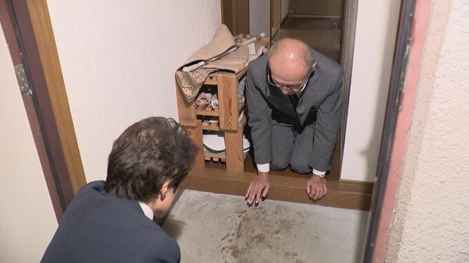 高羽さんが9000日以上にわたって家賃を払い、“保存”してきた名古屋市西区の事件の現場アパート。玄関には血痕が残されています。