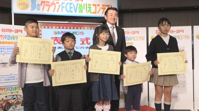 野口さんは、福岡トヨタ自動車などが主催する小学生以下を対象にした「夢のクラウンぬりえコンテスト」で、6000点を超える作品の中から最優秀賞に選ばれました。