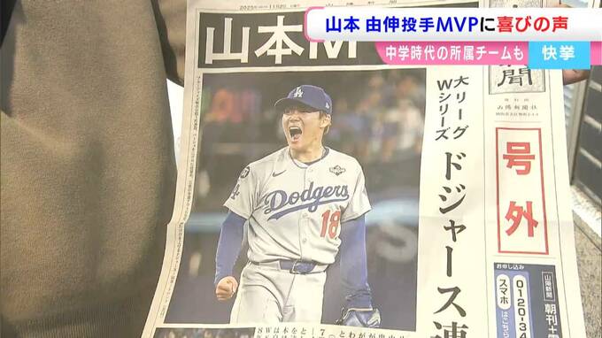 昨日(2日)行われたMLB・ワールドシリーズ第7戦はロサンゼルス・ドジャースが勝利し、チーム初の連覇を成し遂げました。シリーズで3勝を挙げた備前市出身の山本由伸投手がMVPに選ばれ、地元岡山でも喜びの声が聞かれました。