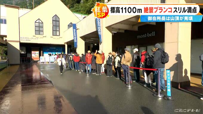 三重県菰野町 御在所岳。11月3日、ふもとのロープウエイ乗り場には県内屈指の紅葉を一目見ようと朝から多くの観光客が。