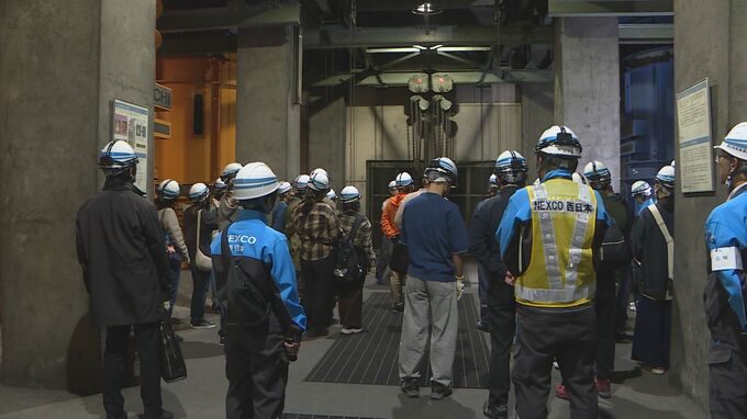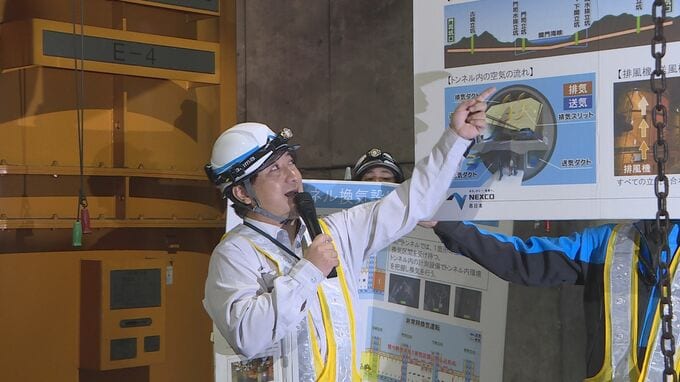 建設に先駆けてつくられた調査用トンネルやトンネル内の換気設備、水抜きをする排水設備など、関係者以外入ることができない場所が公開され、NEXCO西日本の社員が設備の仕組みや老朽化の現状を説明しました。