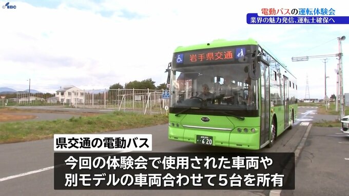 バス業界の魅力発信や運転士の確保につなげようと、盛岡市で電動バスの運転体験会が開かれました。