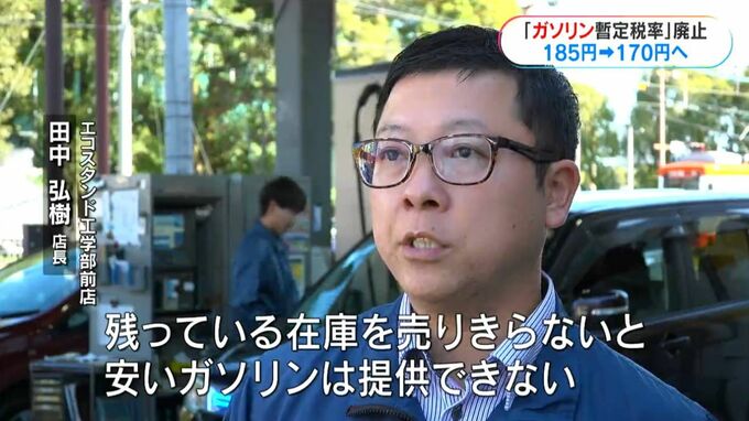 (エコスタンド工学部前店 田中弘樹店長)「残っている在庫を売りきらないと、安いガソリンは提供できない。なるべく早く、安く提供したい」