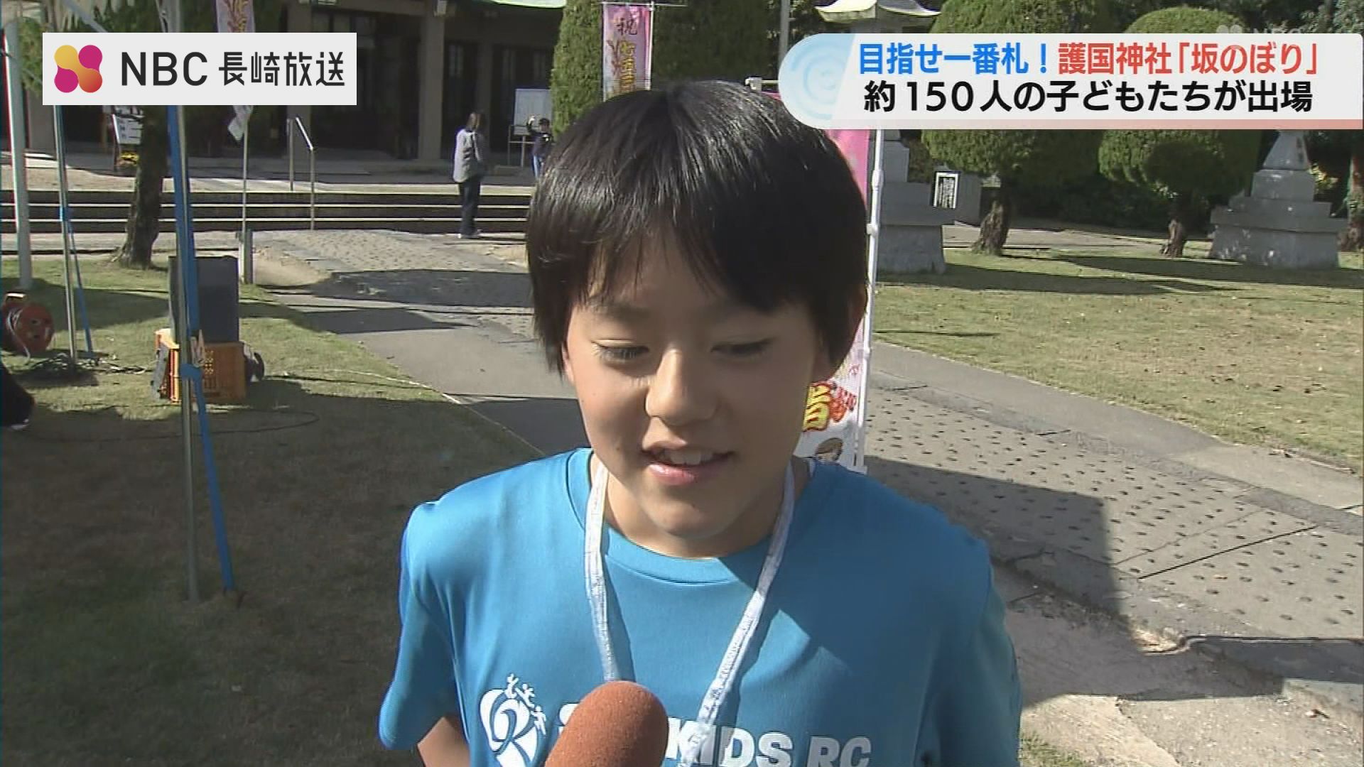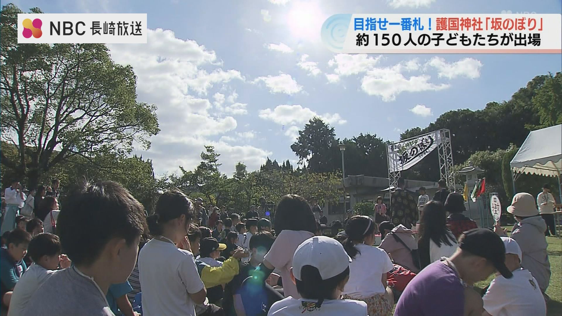 3日、長崎市の護国神社で、境内の一番札を目指して子どもたちが坂を駆け上がる「坂のぼり」が開かれました。