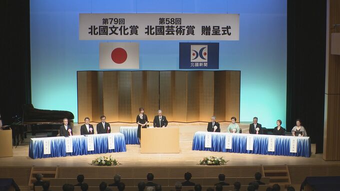 石川県内の文化や芸能などの発展に貢献した団体や個人を称える北國文化賞と北國芸術賞の贈呈式も金沢市内で行われました。