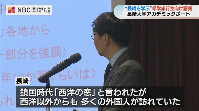 修学旅行生らの受け入れ事業の本格化に向け長崎大学が設立した一般社団法人の取り組みの一環で、3日、埼玉県から訪れた中学生が長崎の歴史や大学の仕組みについて学びました。