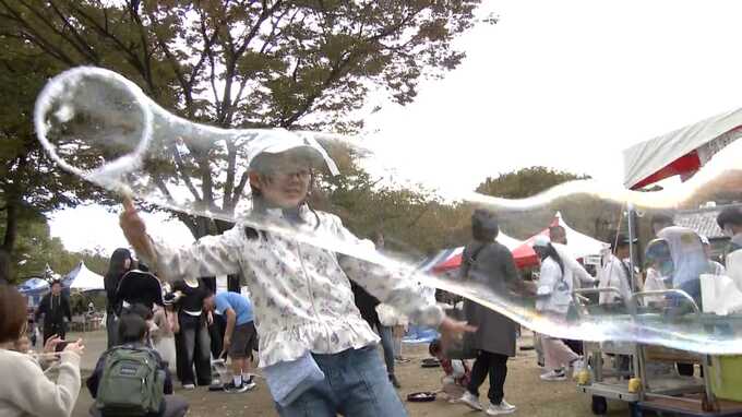 三連休最終日は秋晴れ 各地で笑顔 唐津くんちやモノレール体験、公園では子供向けイベントも 福岡・佐賀 RKB毎日放送 2025年11月4日(火) 11:47 国内 巨大なしゃぼん玉 福岡市中央区の舞鶴公園では、子どもたちが巨大なしゃぼん玉に大興奮。 朝から多くの家族連れでにぎわい、子どもたちの元気な声が響いていました。 「みんな見てねー」