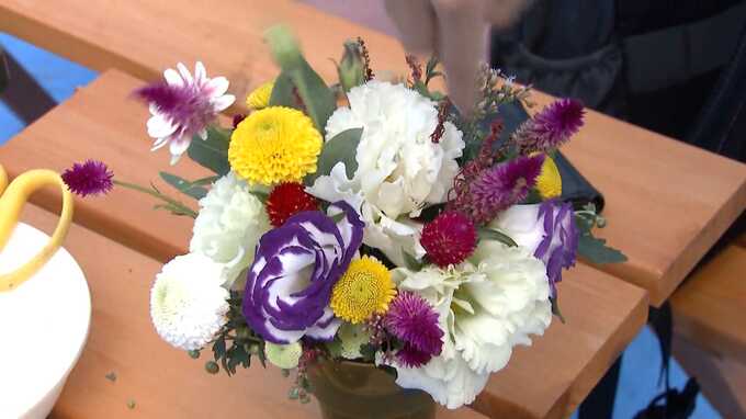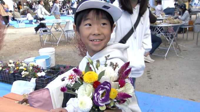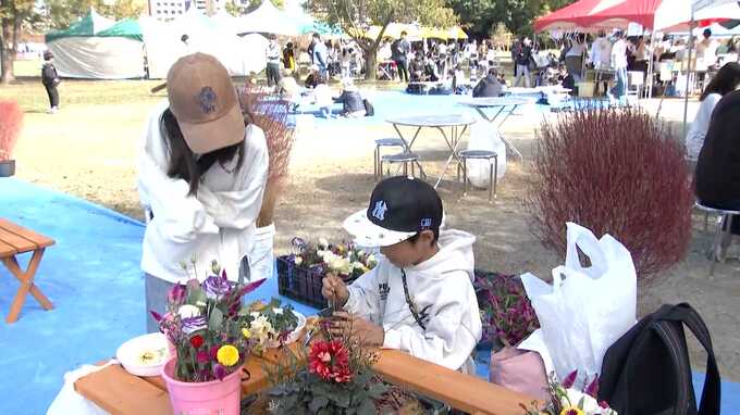 フラワーアレンジメントにリース作りの体験コーナーでは子どもたちが真剣な表情で創作に没頭していました。