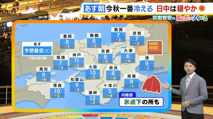 11月4日(火)の近畿地方は、朝はこの秋一番冷えそう。連休明け、しっかり寒さ対策してお出かけください。 3日(月)は西高東低の気圧配置となり、北風が強まった近畿地方では「木枯らし1号」が吹いたと発表…