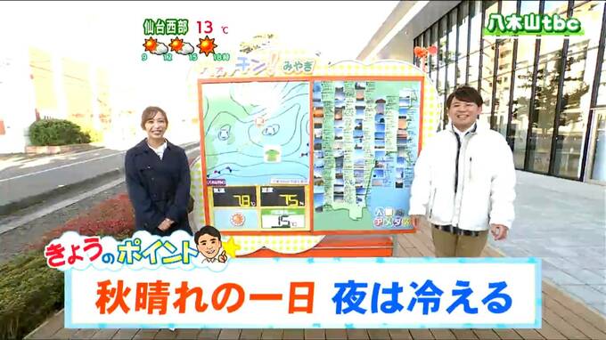 きょう4日(火)は、移動性の高気圧に覆われ、宮城の空は一日を通して秋晴れとなる見込みです。特に東部を中心にすっきりと晴れ渡り、高気圧が乾燥した空気をもたらすため、絶好の洗濯日和となるでしょう。安心して外干しができます。しかし、きょうのポイントは「秋晴れの一日、夜は冷える」ことです。