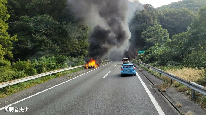 日本道路交通情報センターによりますと、きょう午前9時ごろ、岡山市北区の山陽道上り鼓山トンネル付近で乗用車1台が燃える車両火災がありました【画像①】。