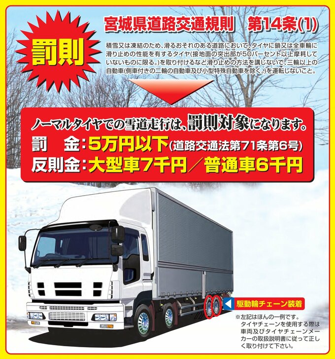 「仙台の街中を運転する場合、※¹仙台の初雪観測の平年値である11月17日までにスタッドレスタイヤに交換することをおすすめします」