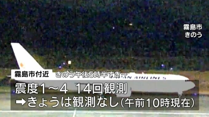 霧島市付近ではこの地震を含む震度1から4までの地震を3日午後5時半すぎから14回観測していますが、4日は観測していません。