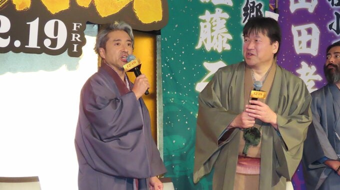 俳優のムロツヨシさん、佐藤二朗さんがW主演を務める映画『新解釈・幕末伝』の新解釈決起会見が行われ、共演の山田孝之さん、広瀬アリスさんとともに作品の魅力を語りました。