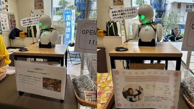 「どこでもオリヒメ」という名前の通り、2人いる販売スタッフのうち、1人は分身ロボット「OriHime(オリヒメ)」です。