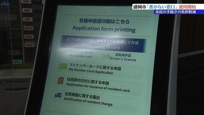 マイナンバーカードを使うことで転入・転居の届け出などの際の書類への記入を省略し、市民の行政手続きの負担を軽くするサービス「書かない窓口」の運用が4日、盛岡市役所で始まりました。(記者リポート)「盛岡…