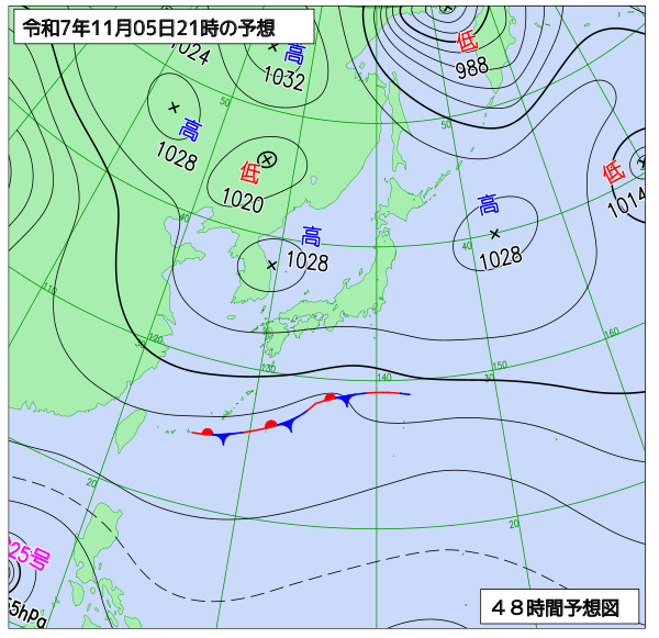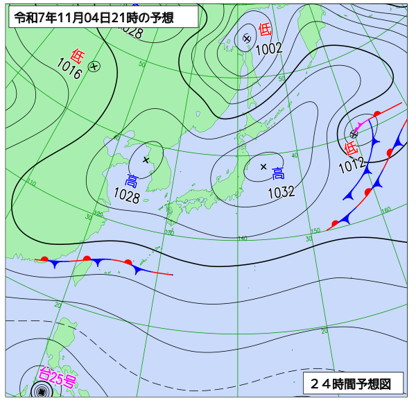 【台風情報・4日午後4時20分に更新】日本の南に“ダブル台風”発生か 強い勢力の台風25号の右側に新たな“台風のたまご”=熱帯低気圧が… 5日にも台風に変わるか 日本への影響は?今後の天気は?【雨風シミュレーション】 青森テレビ 2025年11月4日(火) 14:50 国内 【天気図(最新・24時間・48時間予想図あり)】 気象庁HPより(11月4日午後2時現在) 気象庁HPより 気象庁HPより 気象庁HPより