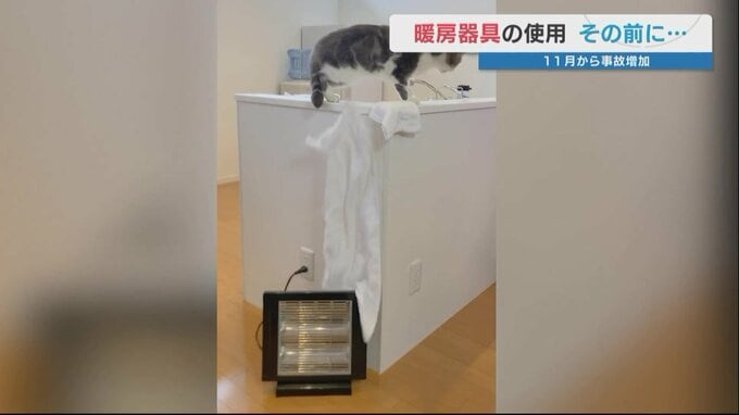猫がタオルをストーブに落として炎上・・・という可能性もあります。ペットの、ふとした行動が思わぬ事態を招きます。