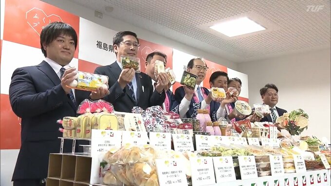 大手コンビニエンスストアとスーパーで、福島県産食材を使った商品を応援するフェアが始まるのを前に、関係者が内堀知事に商品をPRしました。