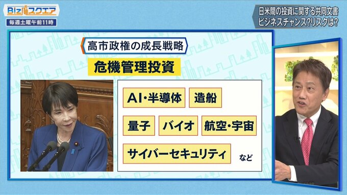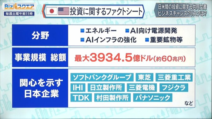 「ファクトシートの4分野だけでなく、80兆円の対米投資は半導体なども対象になっていて、日本が成長戦略として投資をしようという分野と重なっている。その理由は、放っておいたらアメリカばかりがそういう分野で進んでいって、日本企業がそこに吸い寄せられちゃうと。片や中国もこういう分野に投資をやろうとしている。米中に立ち遅れてはいけないという危機感もあってのことなので、投資対象が日米で重なっているというのはものすごく大事な意味合いがある」