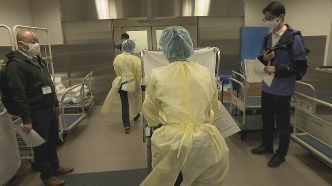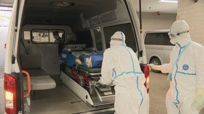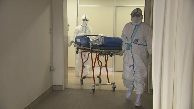 陽性が確定した患者は、ウイルスを封じ込むための透明なバッグに包まれて感染症指定医療機関の日赤名古屋第二病院の感染症病棟に運ばれました。