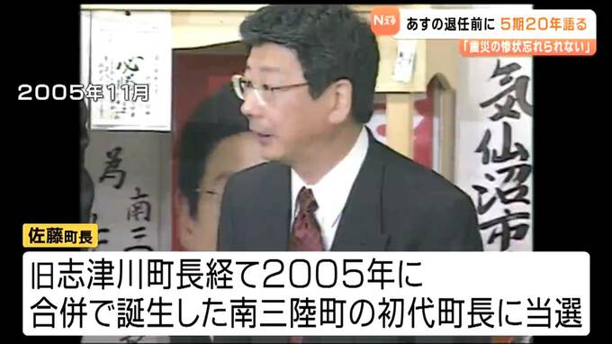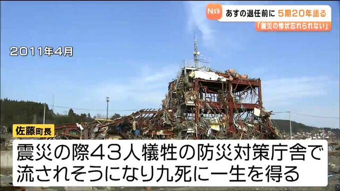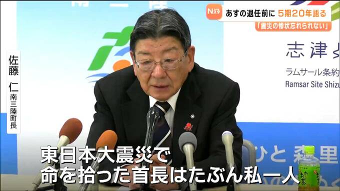 東日本大震災からの復興の陣頭指揮をとっていた宮城県南三陸町の佐藤仁町長が5日で退任します。これを前に4日、最後の定例会見に臨み「震災の惨状は生涯忘れられない」と5期20年を振り返りました。
