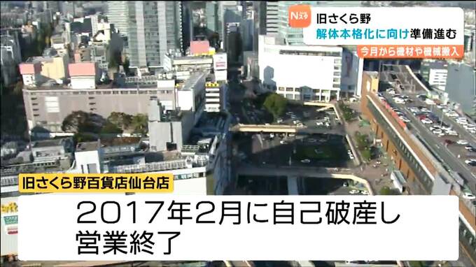 旧さくら野百貨店仙台店は、2017年2月に自己破産して営業を終了しました。2020年3月には、大手ディスカウントストア「ドン・キホーテ」の運営会社=パン・パシフィック・インターナショナルホールディングスが再開発に名乗りを上げましたが、長期間解体工事には至っていませんでした。