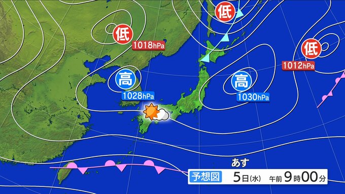 5日(水)おおむね晴れて秋晴れの空広がる 午後ほど雲多め 一日の寒暖差大 脱ぎ着しやすい服装で