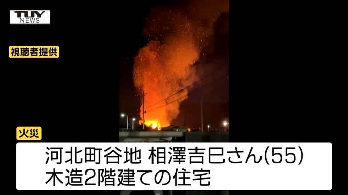 また、昨夜は河北町でも火災がありました。火災があったのは、河北町谷地の相澤吉巳さん(55)の木造2階建ての住宅で、午後8時過ぎに消防に通報がありました。