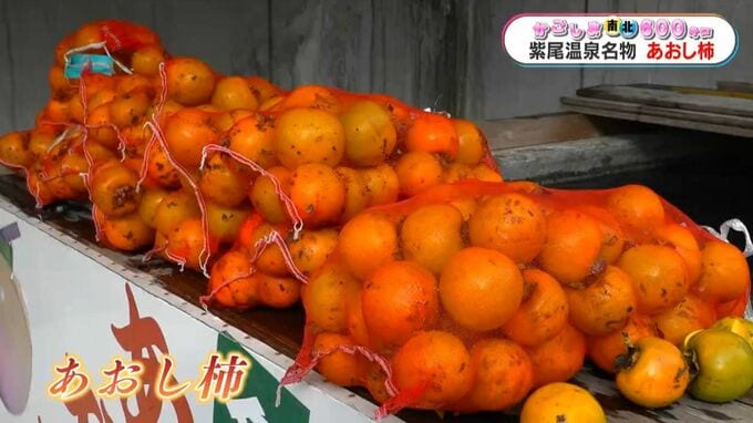温泉で渋を抜いた柿は「あおし柿」と呼ばれ、地元のふるさと物産館で4個入り500円で11月末ごろまで販売されます。