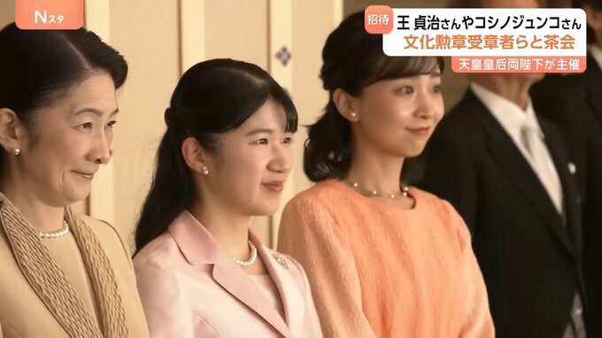 きょう午後、皇居・宮殿で開催された天皇皇后両陛下主催の「茶会」。秋篠宮ご夫妻をはじめとした皇族方も出席し、愛子さまは薄いピンク色のセットアップ、佳子さまはオレンジ色のワンピース姿でした。