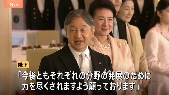 陛下は冒頭、「皆さんが努力を重ね、学術、文化、芸術、スポーツの分野で大きな成果をおさめられたことを誠に喜ばしく思います。どうかくれぐれも体を大切にされ、今後ともそれぞれの分野の発展のために力を尽くされますよう願っております」とあいさつされました。