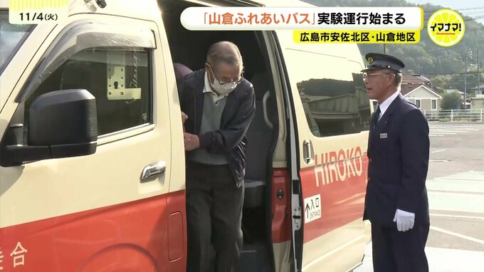 これまで公共交通機関が無かった広島市安佐北区三入の山倉地区で、新しい乗り合いタクシーの実験運行が4日、始まりました。