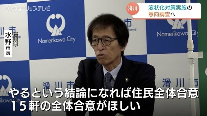 一方、滑川市の水野市長は、4日の定例会見で、維持管理費の「住民負担ゼロ」をうけて、液状化対策実施の意向調査を行うことを明らかにしました。