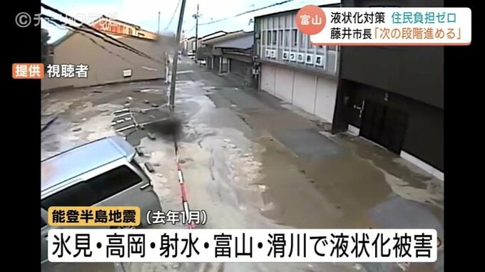 能登半島地震の液状化被害を受けた富山市など県内5つの市は、対策工事にかかる費用について住民負担をなくす方針が決まっています。住民負担ゼロについて富山市の藤井裕久市長は工事に必要な住民合意に向け「次に段階に進めるのではないか」との見解を示しました。
