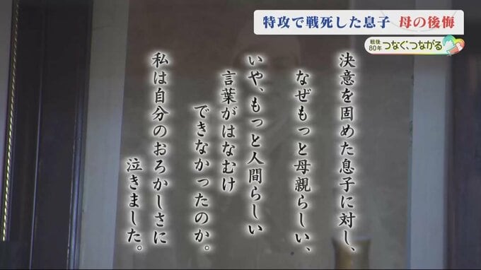 戦後80年「つなぐ、つながる」特攻隊員として戦死した若者の家族は、戦後も後悔を胸に生きていました。熊本城内に建つ護国神社。境内の建物の地下にはあるものが保管されています。管理する関係者に案内してもらい…