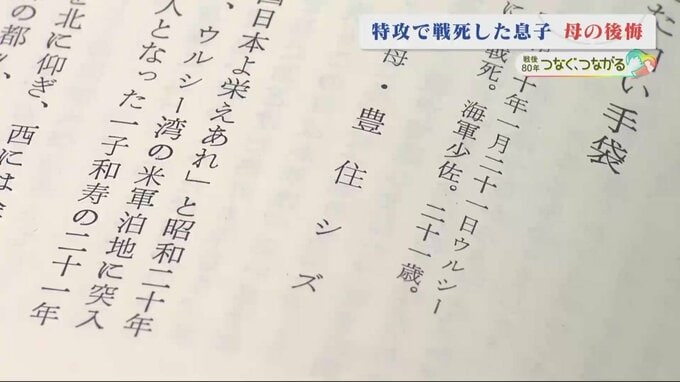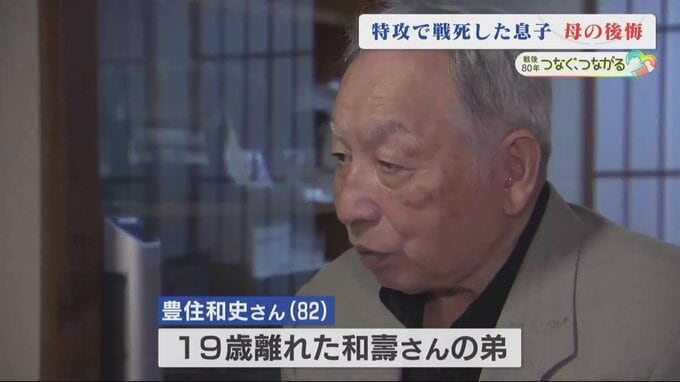 「もっと人間らしい言葉がはなむけできなかったのか、自分のおろかさに泣いた」悔やむ母 特攻で落命した息子を思う手記 戦後80年 熊本放送 2025年11月4日(火) 19:59 国内 幼い弟に遺したもの 熊本市に住む豊住和史さん、82歳。 19歳離れた和壽さんの弟です。 和壽さんから託された軍刀は、今も自宅で大切に保管しています。 豊住和壽さんは1923年に熊本市中央区で生まれ、現在の済々黌高校に入学。
