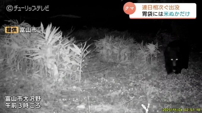 画像は、4日午前3時ごろ、富山市大沢野に設置されたAIカメラがとらえたクマの姿です。
