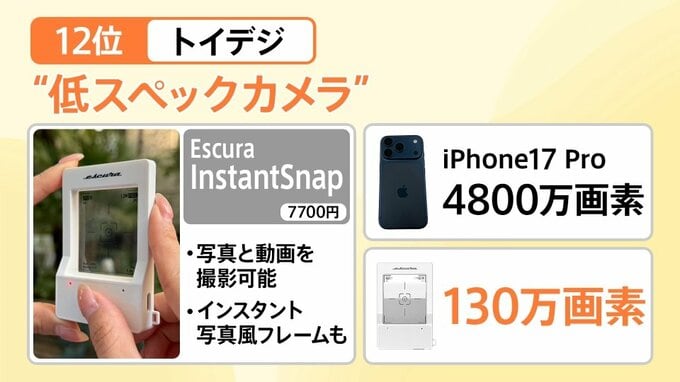 最新の技術以外にもランクインしているものがあります。12位にランクインした「トイデジ」。あえて“低スペック”で、ちょっとざらっとした質感を楽しむということです。
